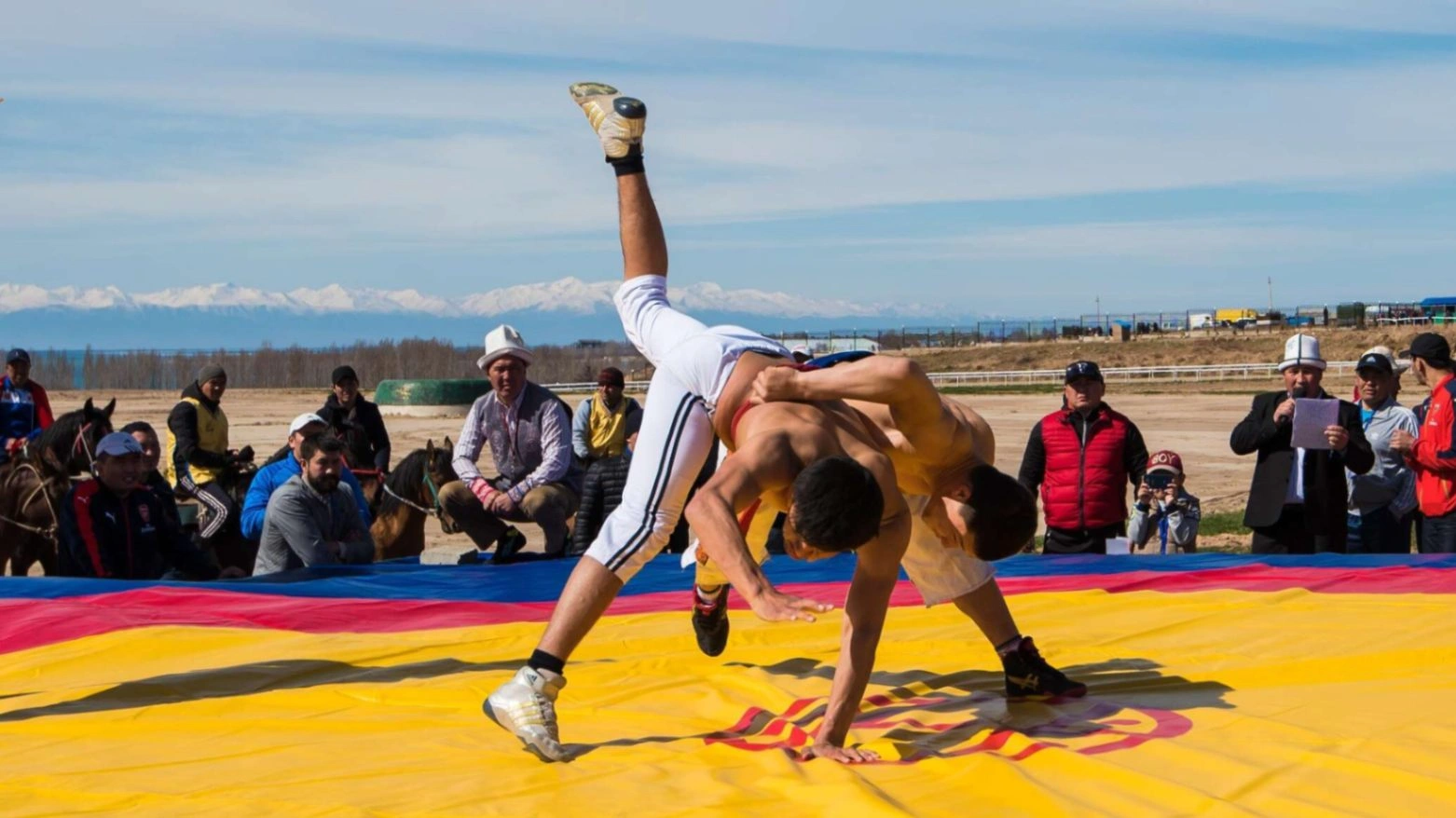 Beim Reisen durch Kirgisistan begegnet man unweigerlich Kyrgyz Kurosh — dem nationalen Ringkampf, der seit Jahrhunderten Teil des Nomadenlebens ist.