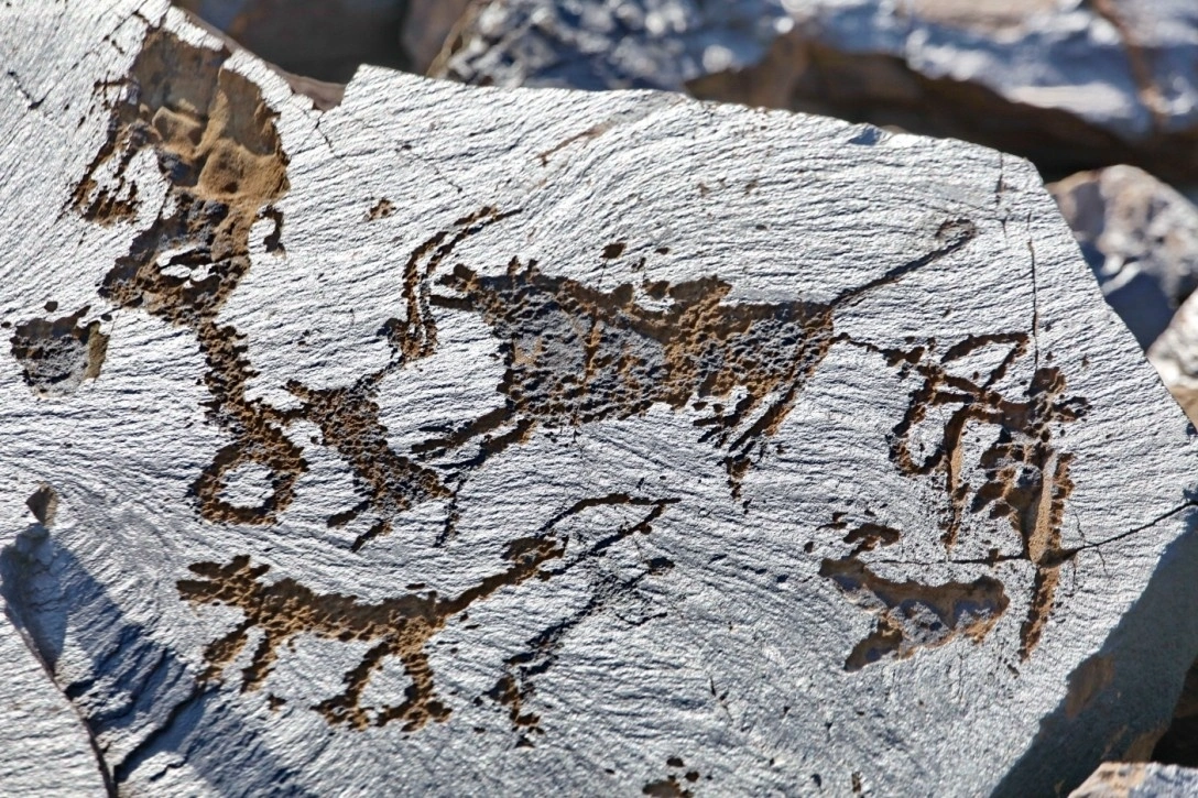 Among hunting scenes, animals, and solar symbols, one drawing surprises researchers the most — the snow leopard petroglyph on a leash.
